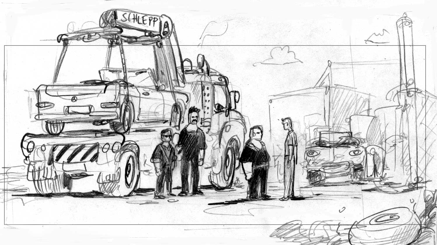 Die Bilder sind übrigens von Jan Siggel für das Storyboard zu meinem Drehbuch IM ZEICHEN DER FISCHE gezeichnet worden…